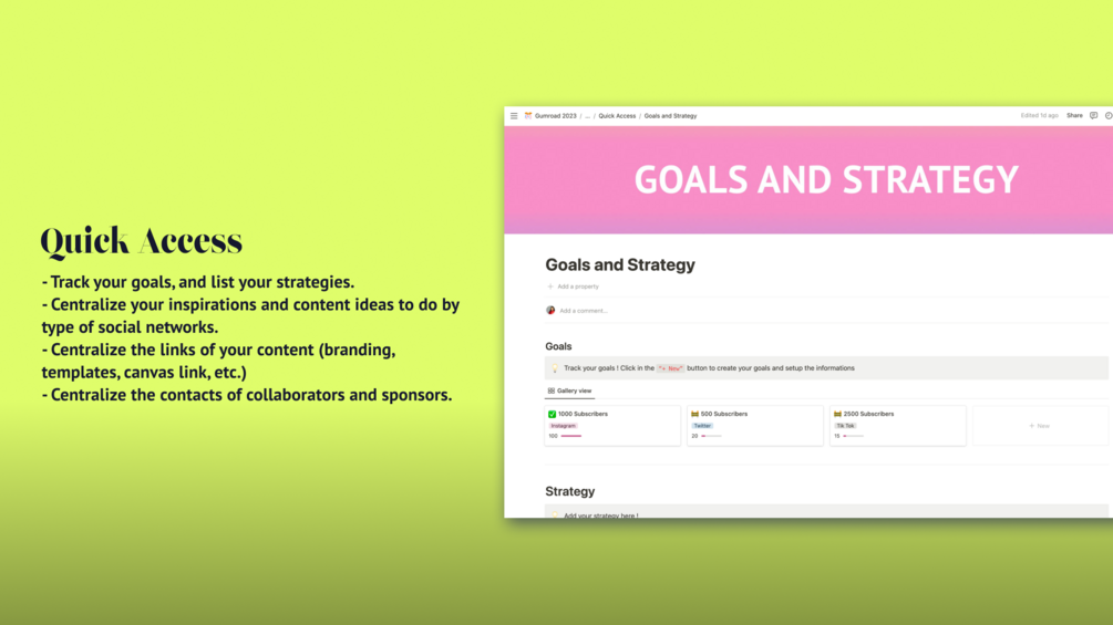 - Centralize the links of your content (branding link, templates, canvas link, etc.)